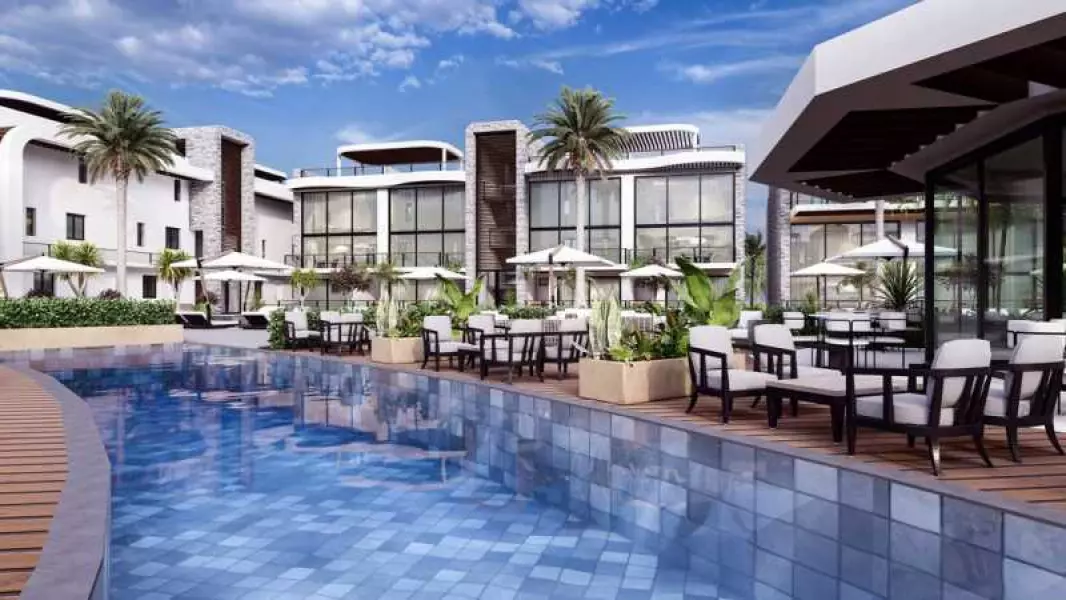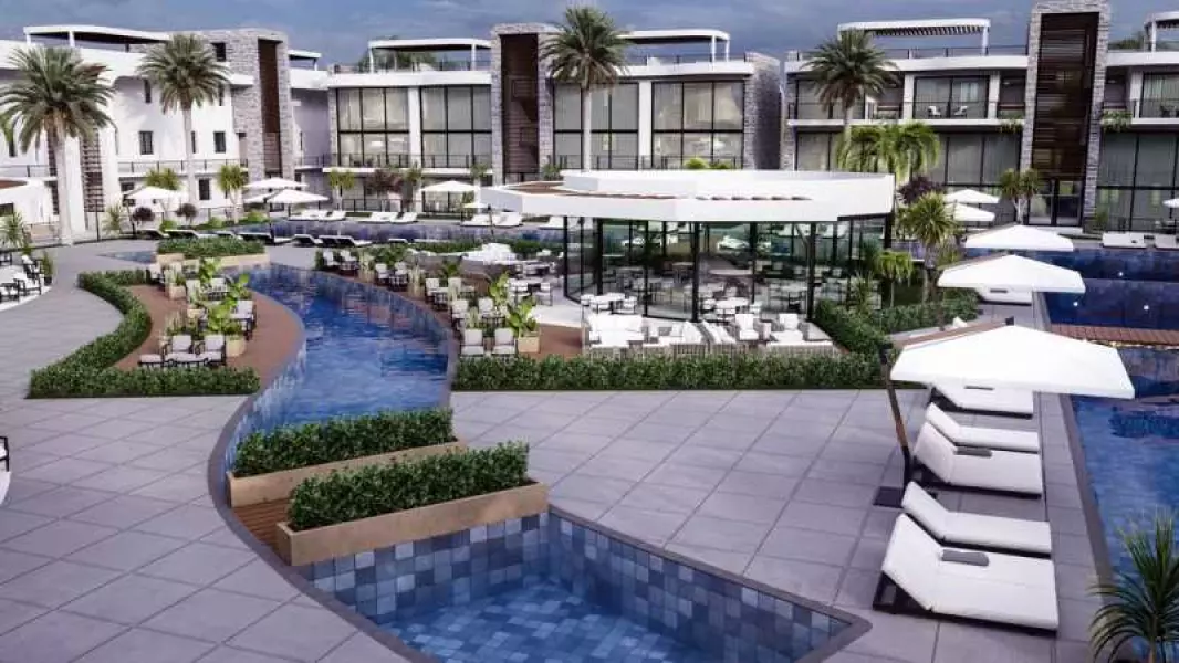 Проект оснащен общим бассейном и ухоженным садом, создающим идеальное место для отдыха.