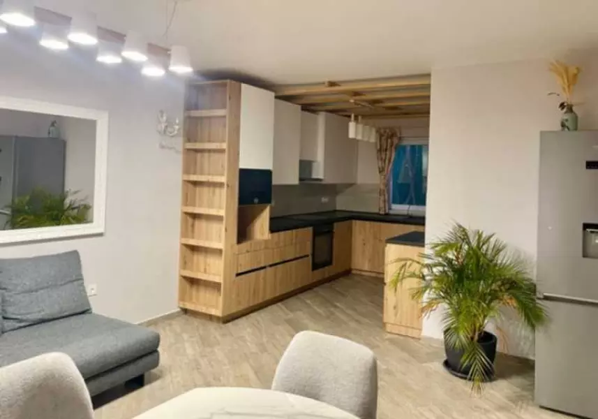 Гостиная с кухней и обеденной зоной, одна спальня, санузел с душевой кабиной и туалетом, терраса