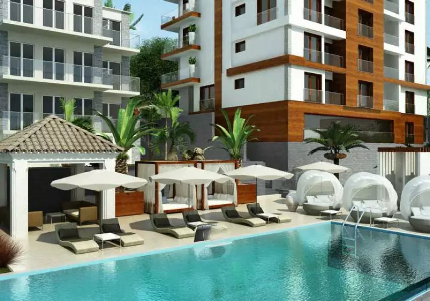 Комплекс имеет свою территорию, тренажёрный зал, бассейн, бар, СПА-центр.