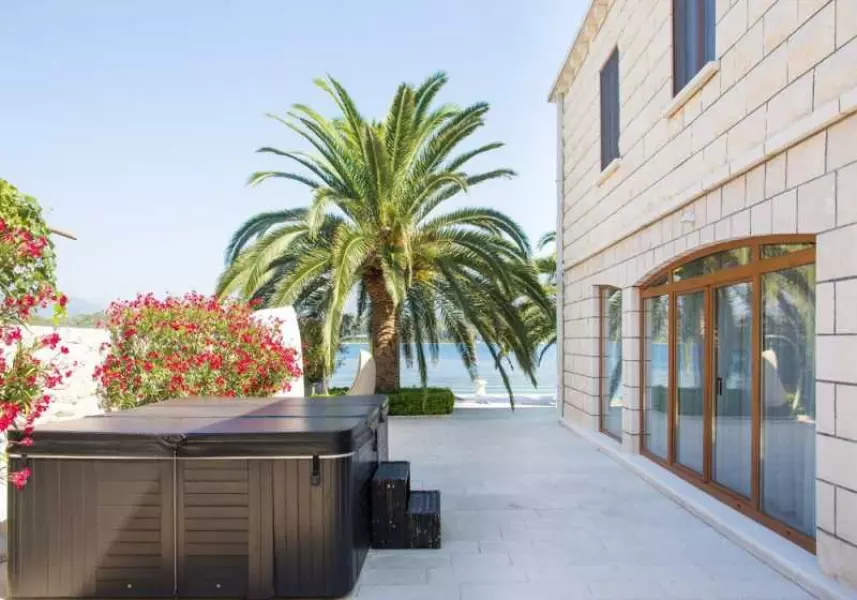 Красивые пальмы перед домом, причал с патио и зонами отдыха, откуда по ступенькам можно удобно спуститься в чистое и прозрачное море, закаты и тихий шум прибоя… это – картинка из Ваших снов…